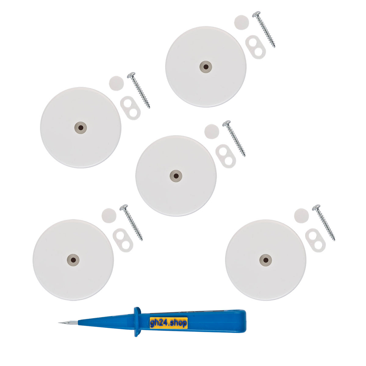 Set mit 5 Stück Deckenbaldachin, Deckenverteilerdose, Deckendose sowie Phasenprüfer