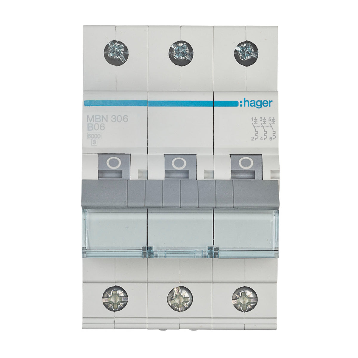 Hager MBN306 Leitungsschutzschalter B6A 3-polig 6kA Schraubtechnik