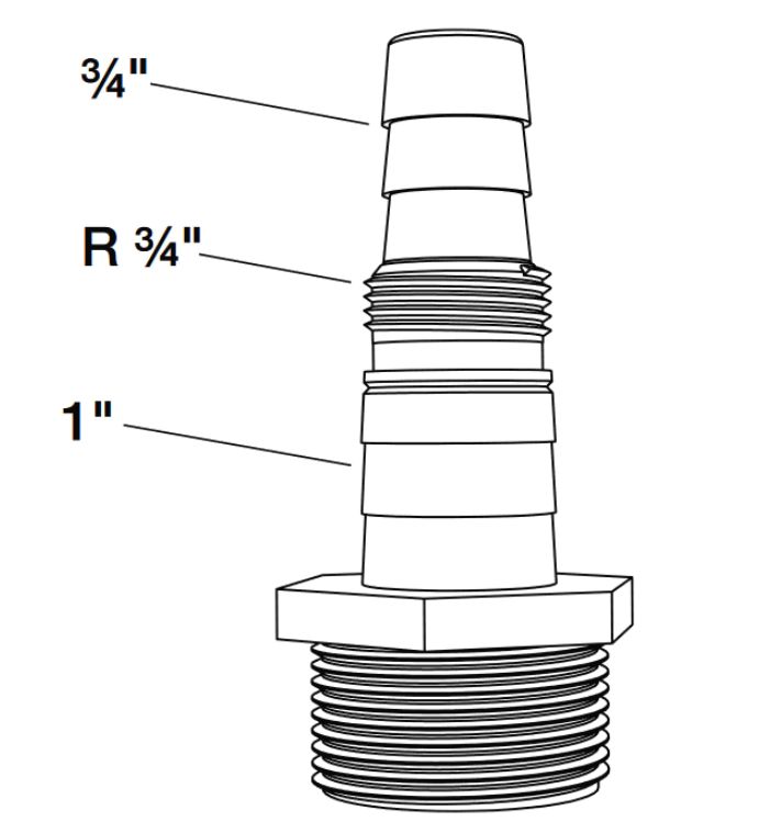 Mit integrierter Rückschlagklappe und beiliegender Tülle für Schlauchanschluss 1/2'', 3/4'' und 1''
