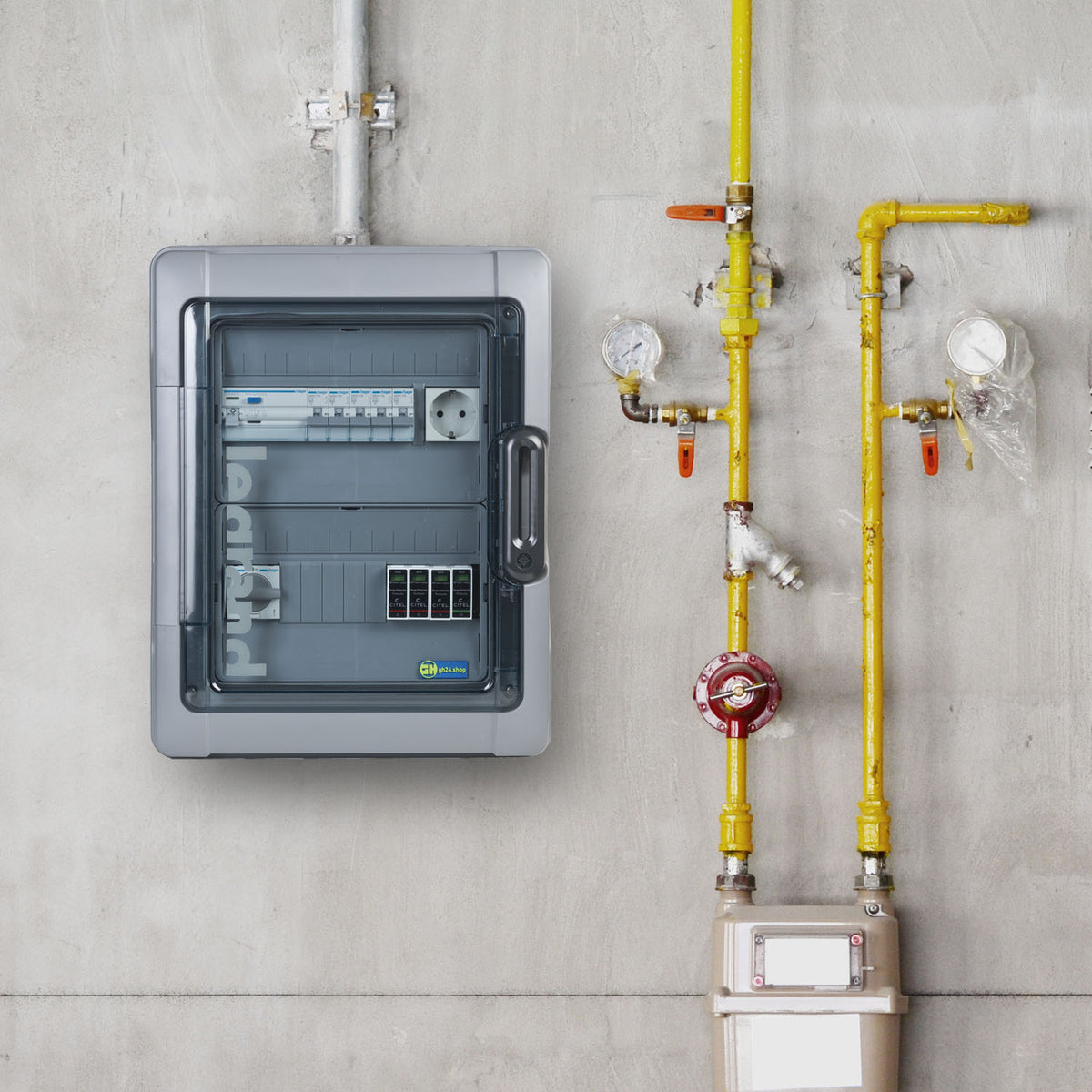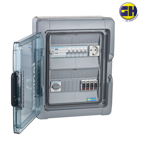 Vorverdrahteter und anschlussfertiger GRENDA-HAMMER Feuchtraum Elektrokleinverteiler.